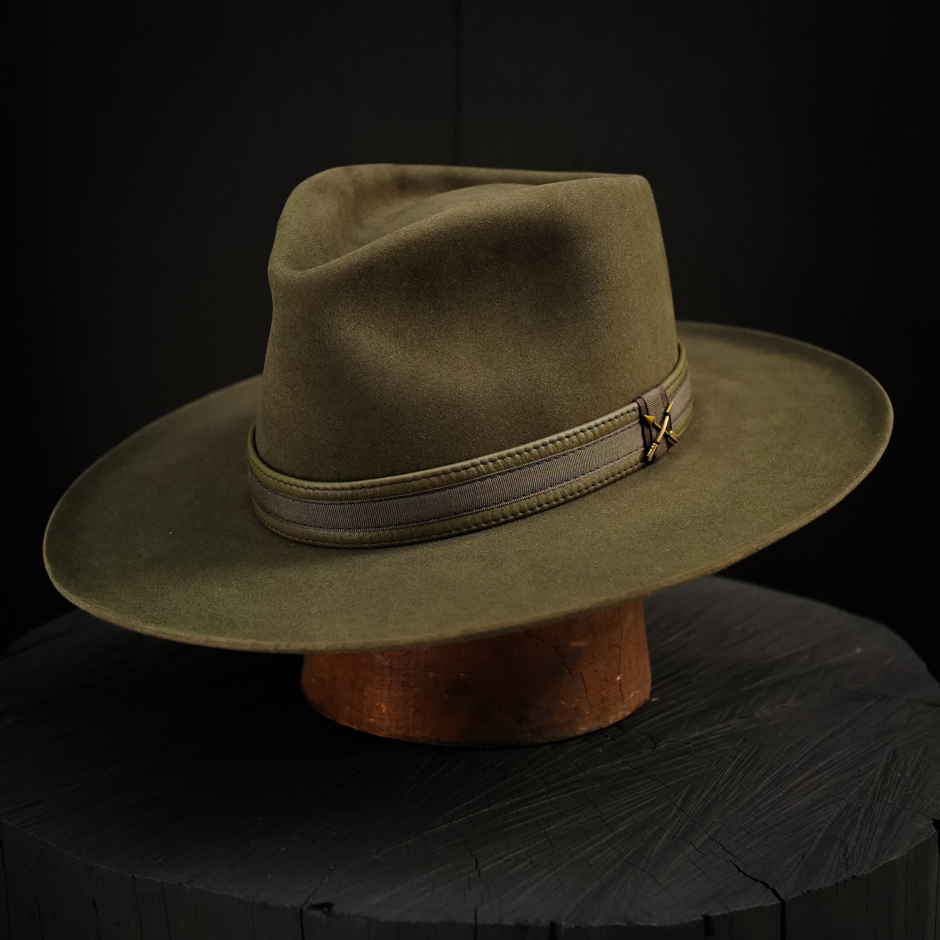 The Sassafras in Dark Moss is a California western wide brim fedora with a Rock 'n' Roll inspiration. Built using USA sourced 100% beaver fur felt. As with all The Wise Hatter hats, The Sassafras is fully handmade using only American materials and comes with a lifetime warranty.